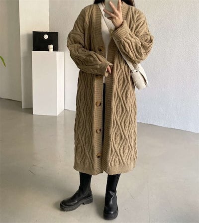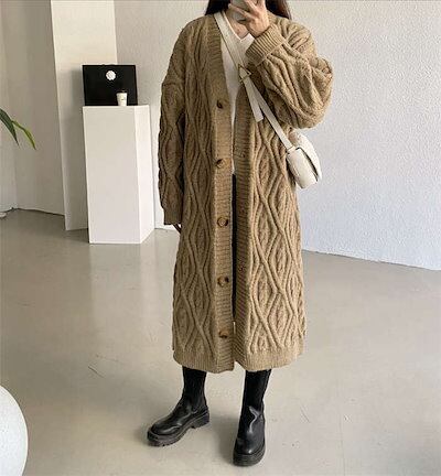 カーディガン ケーブル編みニット レディース ロング丈 秋 冬 ロングカーディガン ニットカーディガン カーデ コート アウター 厚手 あったか ニット セーター ビッグシルエット ゆったり 柔らか