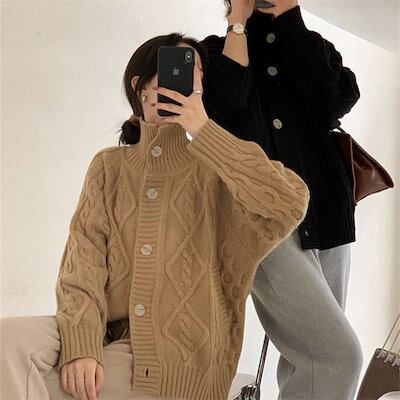 カーディガン レディース ニット セーター 秋冬 ケーブル編み カーディガン 長袖 ニットカーディガン さっと羽織れる ニット 羽織 ゆったり フェミニン 着回し シンプル カジュアル 体型カバー 柔