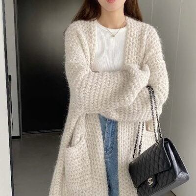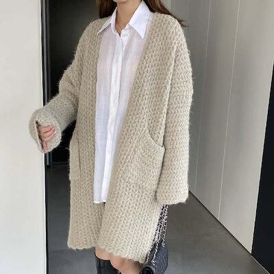 カーディガン ニット レディース ロング丈 秋 冬 ポコポコ ロングカーディガン ニットカーディガン カーデ ふわふわ コート アウター 厚手 あったか ニット セーター もこもこ 大人可愛い 上品