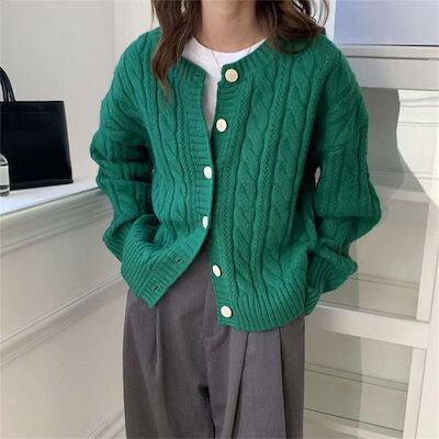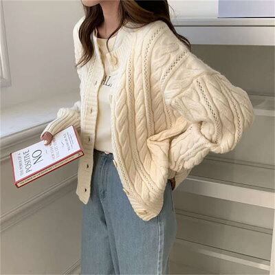 カーディガン レディース ニット 秋 冬 ケーブル編み ノーカラー ニットカーディガン カーデ コート アウター カシミアタッチ ニット セーター とろみ ショート丈 ゆったり 柔らか カジュアル 体
