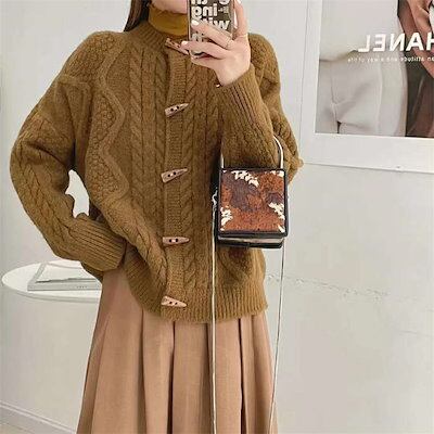 カーディガン レディース ニット 秋 冬 ケーブル編み ノーカラー ニットカーディガン カーデ コート アウター 厚手 ニット セーター とろみ ショート丈 ゆったり 柔らか カジュアル 体型カバー