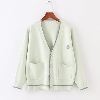 2024 秋 冬 綿 Vネック 制服カーディガン ニットセーター カーディガン レディース ゆったりめ 中学生 長袖 ジャンパー 高中生 アウター レディース