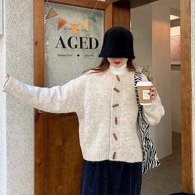 ベーシックニット春 ニットカーディガンセーター トップス アウター ゆったり ニットレディースファッション