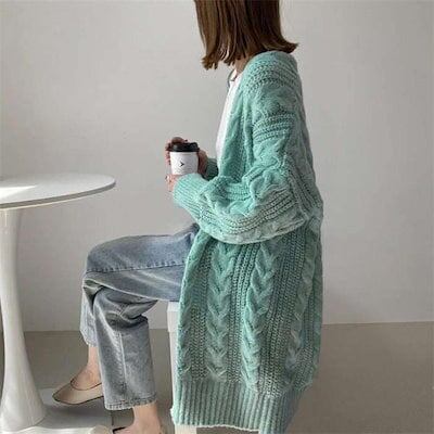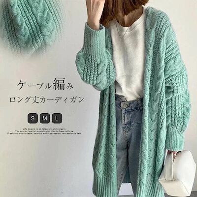 カーディガン レディース ニット 秋 冬 ケーブル編み ロングカーディガン ニットカーディガン カーデ コート アウター 厚手 ニット セーター とろみ ロング丈 ロングカーディガン ゆったり 柔