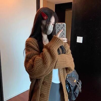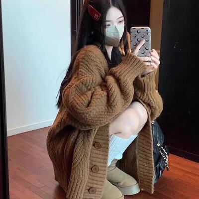 ツイスト セーター コート 秋冬新作 レトロ ゆったり ニットカーディガン トップス レディース カジュアル 百掛け 長袖ニット アウター