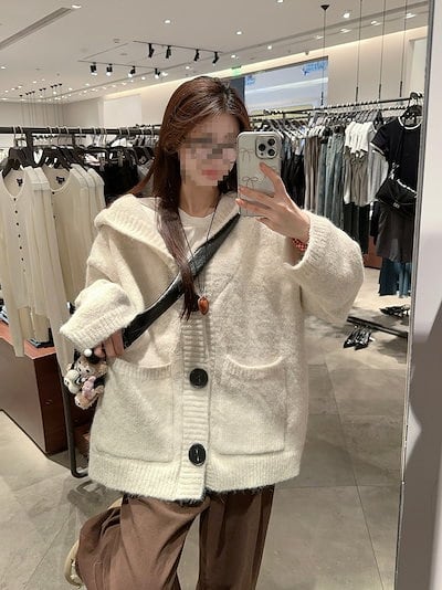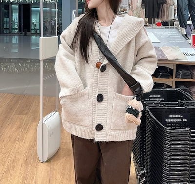 2024 秋冬フード付き ニットカーディガン 大きいボタン ニット シングルブレスト ルーズ 長袖 レトロ 韓国ファッション レディース