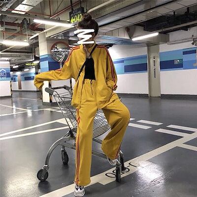 春秋 2点セットアップ ジャージ レディース 韓国風 上下セット スウェット パーカー スエット アクティブウェア カジュアル スポーツ 部屋着 ゆったり 大きいサイズ