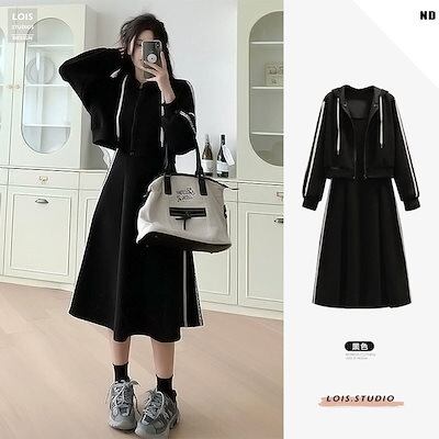 スウェット上下セットドレスレジャースポーツ痩せ見え2点セットセットアップレディースワンピース