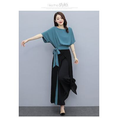 セットアップ レディース 春夏 オシャレセットアップ 半袖ブラウス 九分丈ワイドパンツ シフォン上下セット 韓国風 通勤OL 30代40代 50代大きいサイズ