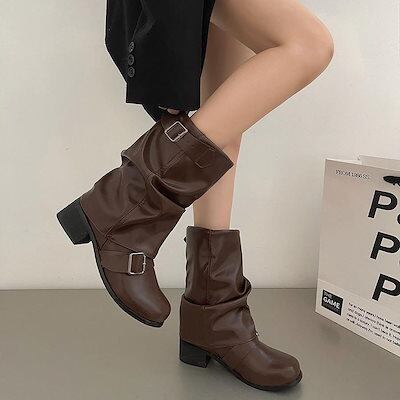 韓国ファッション レディースショートブーツ カジュアルブラウンマーディンブーツ 百掛けショートブーツ