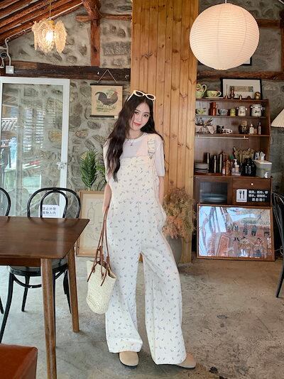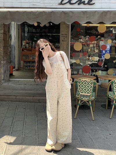2024 夏 韓国 可愛い かわカジ オールインワン かわいい サスペンダー カジュアル系 パンツ サロペット カジュアル おしゃれ 甘辛 白 ホワイト