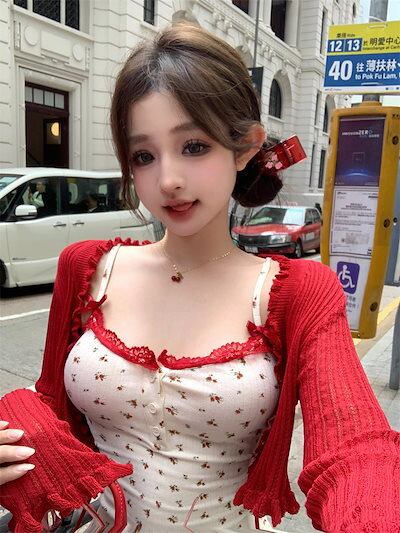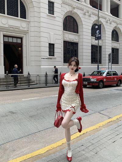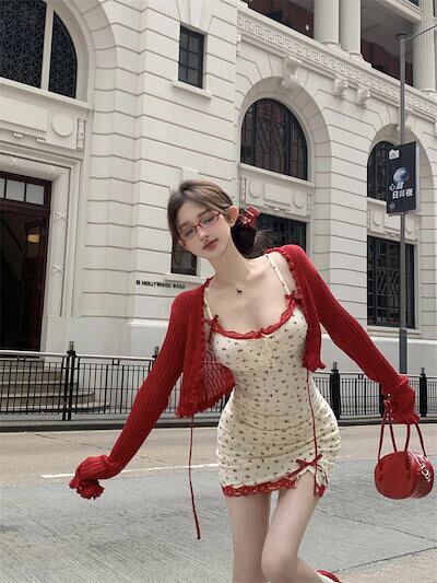 2024夏 韓国 ワンピース ロング丈 ゆったり キャミソール ハイウエスト 小花 フィッシュテールかわいい カジュアル おしゃれ 夏 ファッション フィッシュテールフレンチお出かけ