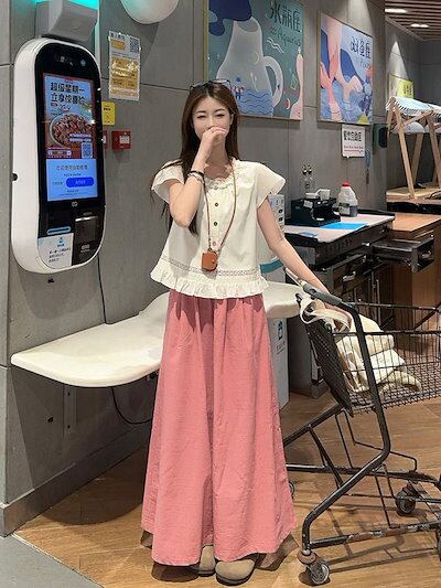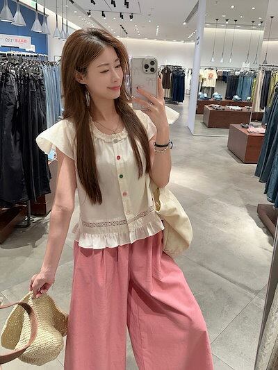 2024 春夏パンツ ロング丈 ワイド フレア ハイウエスト 美脚効果 脚長効果 細見え 夏 ピンク ガーリー キュート おしゃれ かわいい 韓国ファッション レディース お出かけ