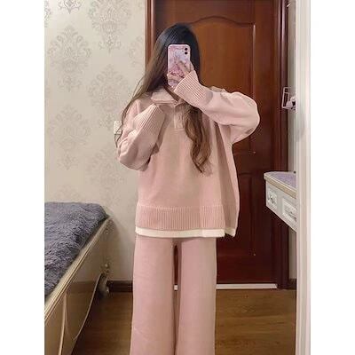 ベーシックニット 秋冬 新作 おしゃれ 気質 上下レディースセットアップ ニット アウター 二点セット セーター ワイドパンツ セットアップ 通勤 長袖セーター 福袋