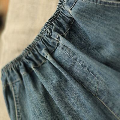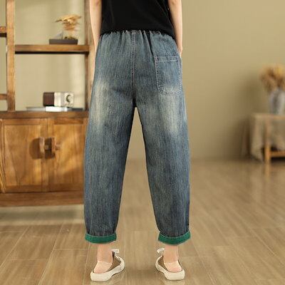 デニムパンツ レディース ジーパン サルエル ワイドパンツ サルエルパンツ ジーンズ デニム パンツ アンクル丈 カジュアル パンツ ボトムス ゆったり ウエストゴム 楽チン 刺繍 楽チン おしゃれ
