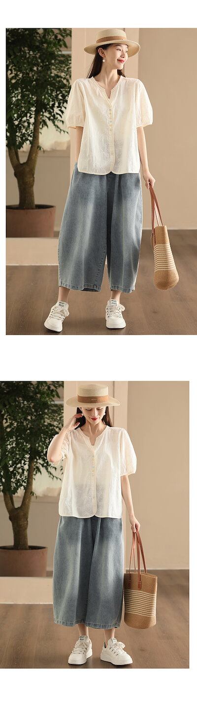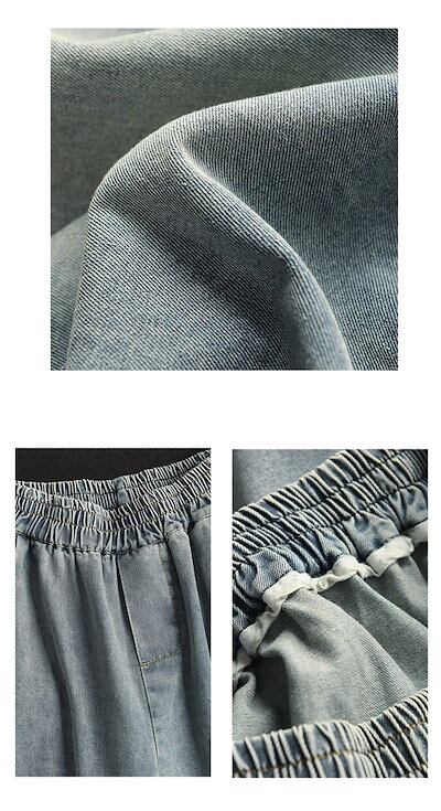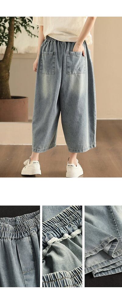 デニムパンツ レディース 7分丈 ワイド ワイドパンツ ワイド 大きいサイズ ゆったり 薄手 きれいめ ボトムス ウエストゴム 無地 柔らかい オフィス 美脚 通勤 可愛い 通勤 OL 体型カバー カ