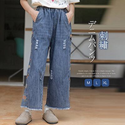 デニムパンツ レディース ワイドパンツ ストレートパンツ レディース 9分丈 ジーパン ゆったり ワイドパンツ 刺? 美脚 デニムパンツ 大きいサイズ 柔らか バギー ボトムス チノパン 春夏秋 カ