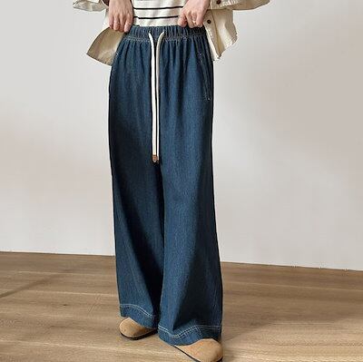 ワイドパンツ デニムパンツ レディース 春秋 パンツ デニム ジーンズ ジーパン ボトムス ゆる リラックスパンツ ゆったり 体型カバー ハイウエスト 大人 ウエストゴム 柔らか 着?せ 美脚 おし