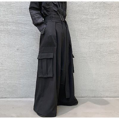 目玉商品超 パンツ メンズ レディース 春 秋 ゆったり B系 ワイドパンツ レイヤード スカートパンツ レディース ボトムス ガウチョパンツ 無地 薄手 黒 変形 v系 モード