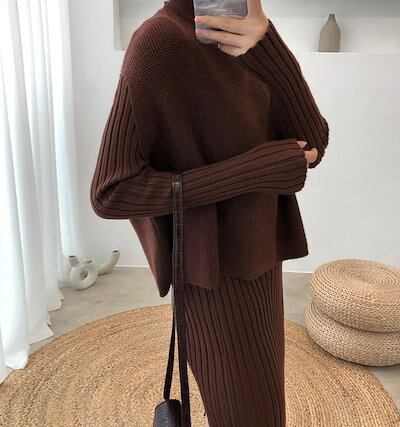 秋冬 新作 おしゃれ 気質 セーター ワイドパンツ セットアップ 長袖セーター 上下レディースセットアップ ニット アウター 二点セット ベーシックニット 福袋
