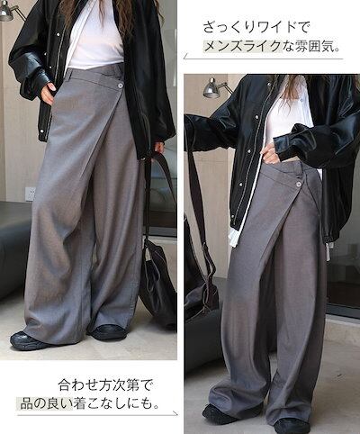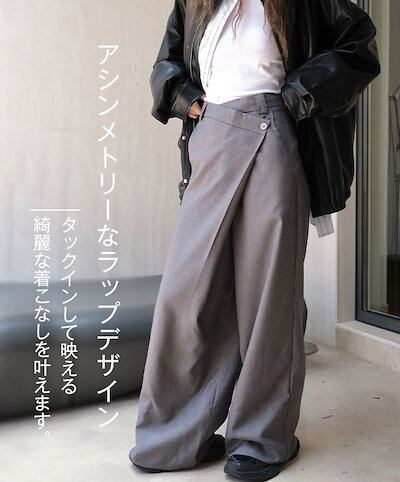 ワイドパンツ パンツ レディース タックワイドパンツ ボトムス アシメ ロング 無地 ワイド ゆったり 大きいサイズ 長ズボン ラップパンツ 変形 スカート風 美脚 上品 落ち感 キレカジ オフィカジ