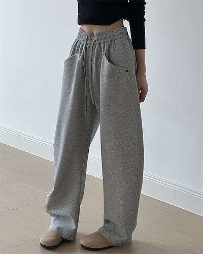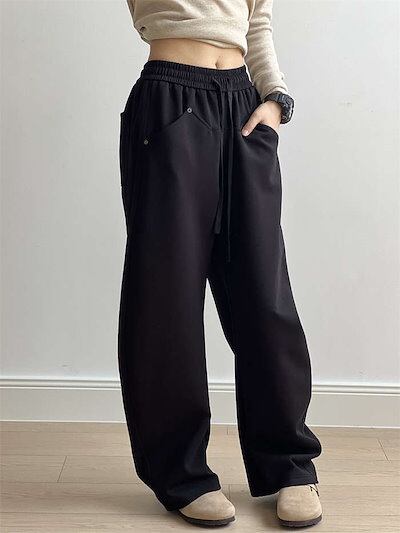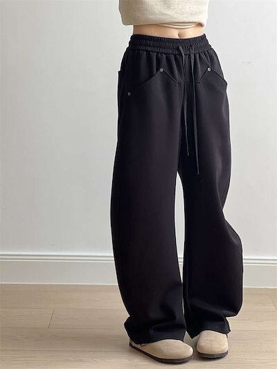 ワイドパンツ ストレートパンツ レディース ロング丈 ポケット付き 春 秋 冬 スウェット 無地 シンプル ジャージーパンツ ボトムス ストレート イージーパンツ ウエストゴム ワイド 大きいサイズ