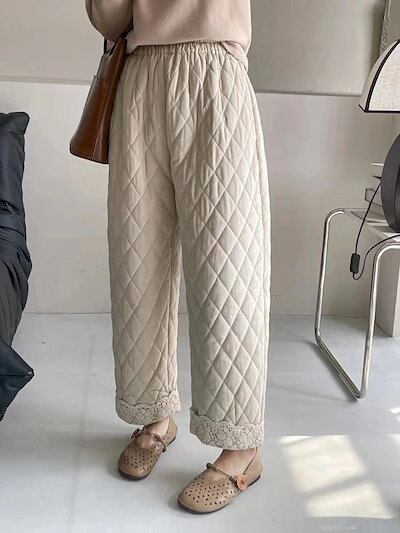 パンツ レディース 冬 中綿パンツキルティング テーパードパンツ 秋冬 ロングパンツ 中綿パンツ ワイドパンツ ウエストゴム ポケット付き 無地 レース ボトムス 寒 保温 暖かい 防寒 ゆったり