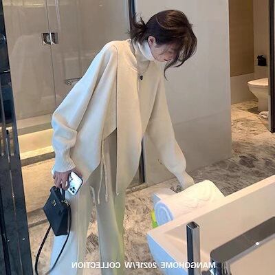 2024秋冬 新作 おしゃれ 気質 レディースセットアップ ニット アウター 二点セット 上下セット セーター ワイドパンツ セットアップ