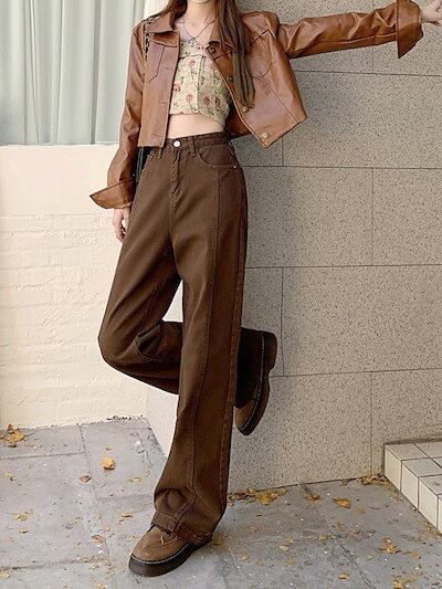 2024新作レトロ ジーンズ レディース ハイウエスト ゆったり ストレート ワイドパンツ 秋 かっこいい!スラックスパンツ コーデュロイパンツ
