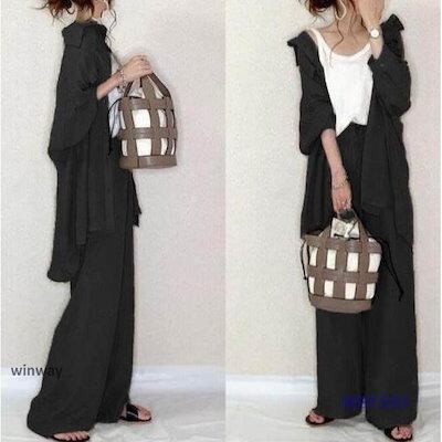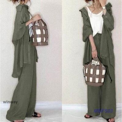 期間限定 セットアップ パンツスーツ レディース 2点セット ブラウス シャツ ドルマンスリーブ 夏 ワイドパンツ 長袖 春 秋 通勤 カジュアル 着痩せ