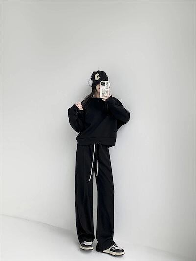 セット セットアップ スポーツ カジュアル ワイドパンツ 2点セット シンプル レディース 新作 ルーズ 人气 スウェット