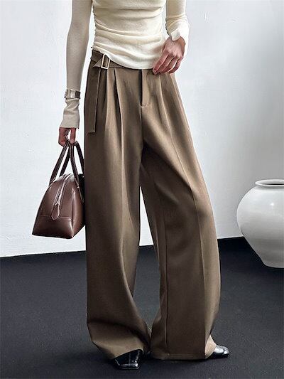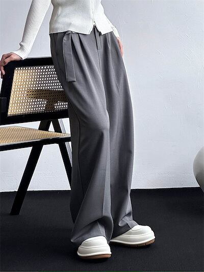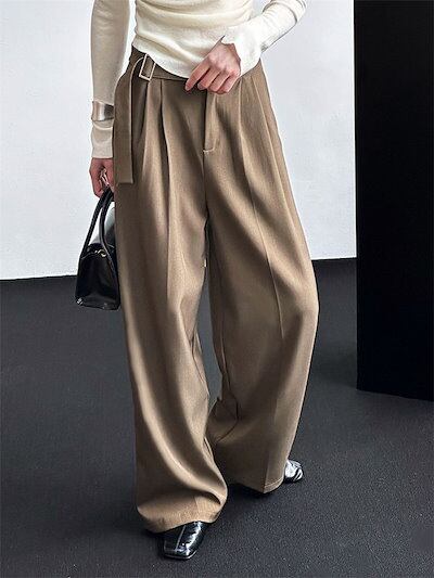 タックワイドパンツ レディース ボトムス パンツ ベルト付き ハイウエスト ワイドパンツ 春夏 ロング ゆったり ズボン カジュアル 通勤 仕事 オフィス 事務所 OL 体型カバー 楽ちん ファッショ