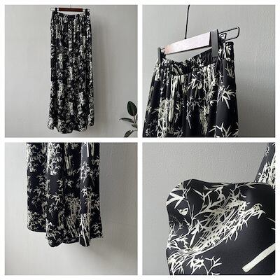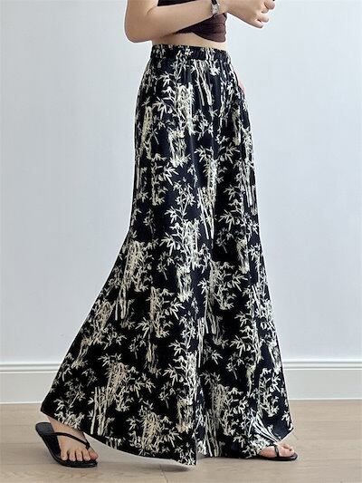 ワイドパンツ ひんやり 竹柄パンツ レディース 夏 フレアパンツ 涼しい ガウチョパンツ ロングパンツ リゾート 花柄 バギーパンツ 大きいサイズ ゆったり シフォン リラックス ビーチ 海 爽やか