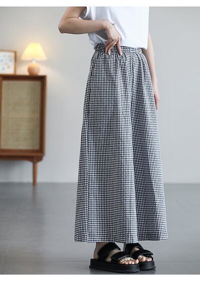 ギンガムチェックワイドパンツ レディース 夏 九分丈 薄手 チェックパンツ チェック柄 大きいサイズ ボトムス パンツ きれいめ ワイドパンツ 綿麻風パンツ 綿混 ウエストゴム オフィス 通勤 体型カ