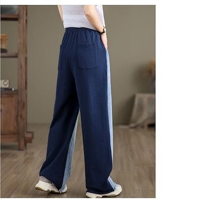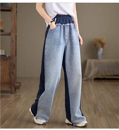 ワイドデニムパンツ 切替 ワイドパンツ レディース スウェット パンツ 春秋 ロングパンツ デニムパンツ ジーンズ ボトムス リラックス ウエストゴム ジーパン バギーパンツ イージーパンツ ゆった