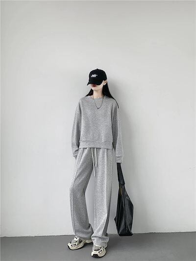 セットアップ スウェット 2点セット 人气 カジュアル ルーズ セット スポーツ ワイドパンツ レディース 新作 シンプル