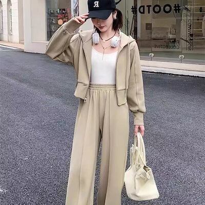 【送 料 無 料】初秋 新作 レディース パーカー セット 通勤 二点セット フォーマル シンプル 長袖スウェット フード付き ワイドパンツ 百掛け 快適 セットアップ 韓国ファッション 体型カバー