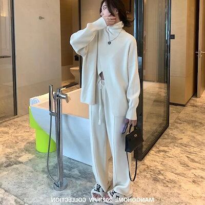 秋冬 ファッションセットアップ おしゃれ 気質 レディース ニット アウター 二点セット 上下セット セーター ワイドパンツ セットアップ 通勤 シンプル 福袋