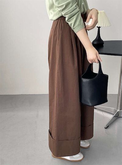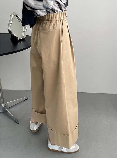 ワイドパンツ レディース 春 夏 秋 パンツ ロングパンツ ボトムス リラックスパンツ ウエストゴム ポケット タックパンツ コットン 綿 無地 フレアパンツ ガウチョ 落ち感 オフィス カジュアル