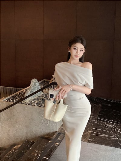 2024 春夏 ロングワンピース ロング丈 ワンピース 長袖 ファッション フィット カジュアル パーティー きれいめ ハイ ハーフリブフレンチスタイルアップ 色っぽ 女っぽ カジュアル大人