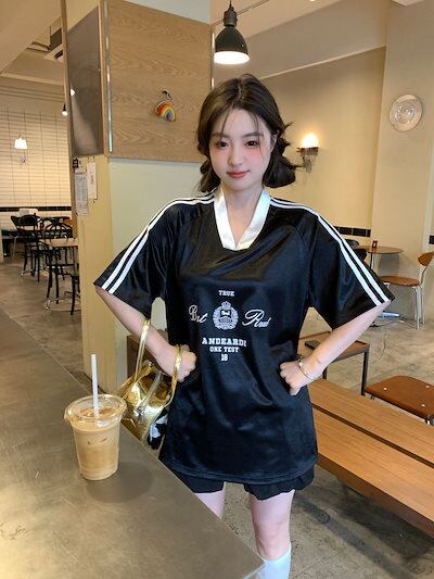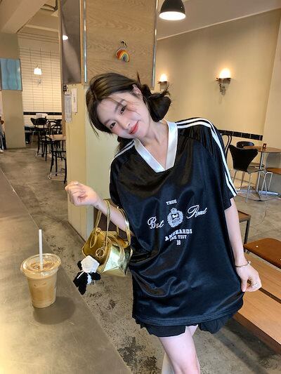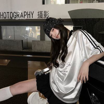 2024夏 韓国可愛い風トップス Tシャツ ロング丈 ファッション半袖スリムフィット サイド ペイントシルエット ゆったり 休日レディースサイズ韓国系ネック_おしゃれ カジュアル メンズライク T