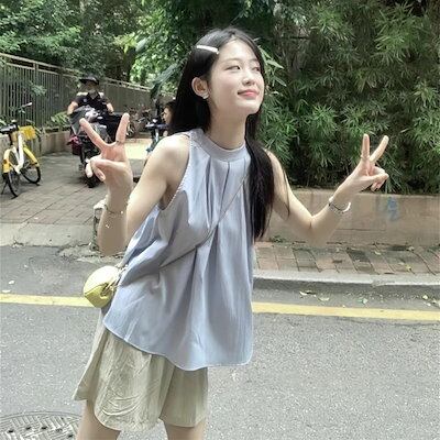 2024春夏ノースリーブ ベストシャツ トップス 韓国ファッション