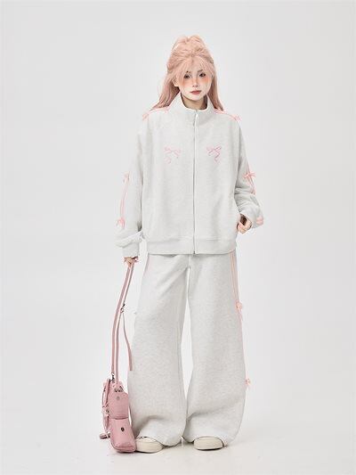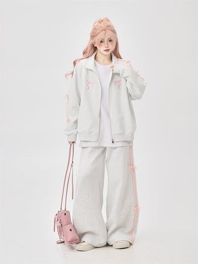 2024 春秋 2点セット トップス お出かけ 羽織り 韓国 レディース フルラウンドヘム ルーズ サイド ボトムス ストレート系冬 ゆったり サイズワイドシルエット上下リラックストラック2