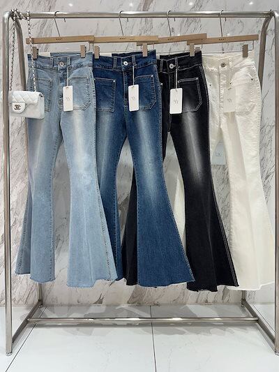 2024秋冬パンツ デニム ジーンズ ロング丈 スキニー ワイドレッグ ウォッシュ加工 ハイウエスト 美脚効果 脚長効果 細見え 秋 おしゃれ かわいい 韓国ファッション レディース お出かけ