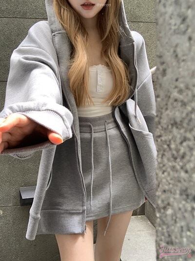 上下別売り 普段使い 長袖シャツ トップス ミニスカート丈長めルーズ レディース かわいい シルエット 2点セット フード付き風 きれいめ サイズ 秋冬 ゆったり ファッションダ ブル 大人 可愛い