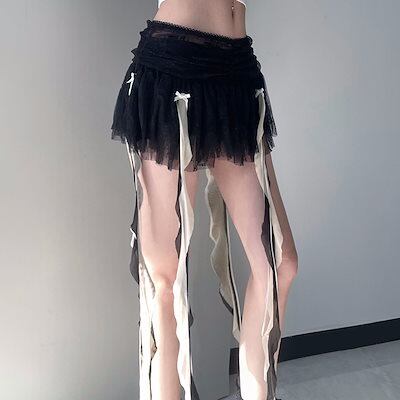 2024 夏秋 スカート かわいい ミニ丈 ハイウエスト 透け感 レトロデザイン 脚長効果 美脚効果 細見えボトムス 夏 黒 カジュアル おしゃれ 甘め フレンチ 韓国系ファッション2