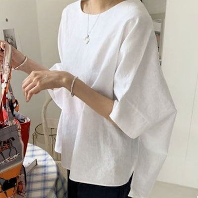 シアーシャツブラウスブラウスレディースフリルシースルーレディースファッションシフォンレーストップスタイブラウスノースリーブシャツTシャツゆったり大きいサイズ綿麻シャツ半袖シャツ太め体型カバービッグシル