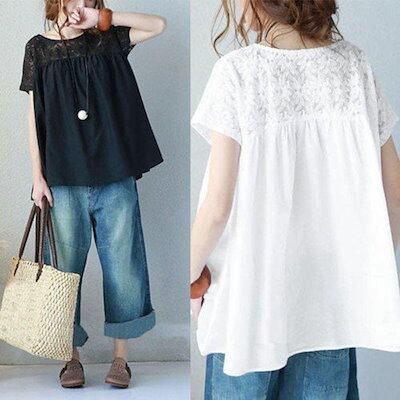 の入荷 大きいサイズ レディースファッション トップス Tシャツ 半袖 ゆったりカットソー おしゃれ 大人 新作 LL 2L 3L 4L ブラック 黒 ホワイトgh431