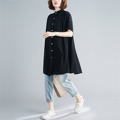チュニック シャツワンピース ロングシャツ レディース 半袖 春 夏 チュニックシャツ 大きいサイズ