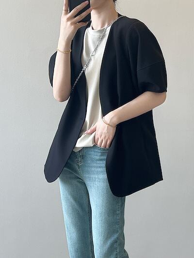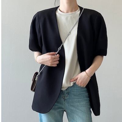 春アウター バブル袖 スーツアウター レディース 2024 春夏 薄手 カジュアル 半袖 スーツアウター